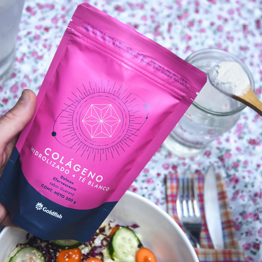 Nuestro suplemento combina colágeno hidrolizado con calcio, magnesio, vitamina C, fibra, garcinia y té blanco, ofreciendo una fórmula completa para el cuidado de tu cuerpo.