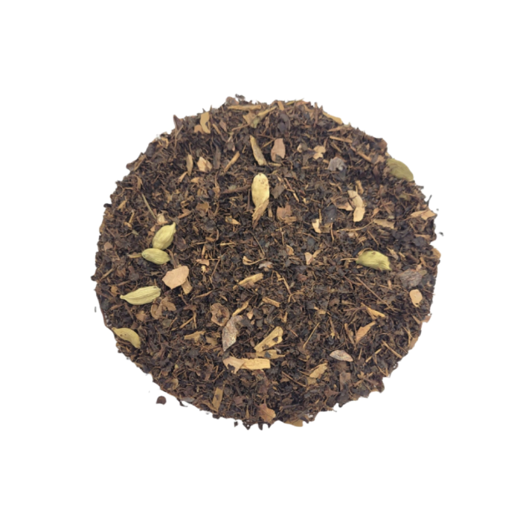 Té chai agregado de cascarilla de cacao que le aporta un sabor dulce y cremoso a la mezcla.