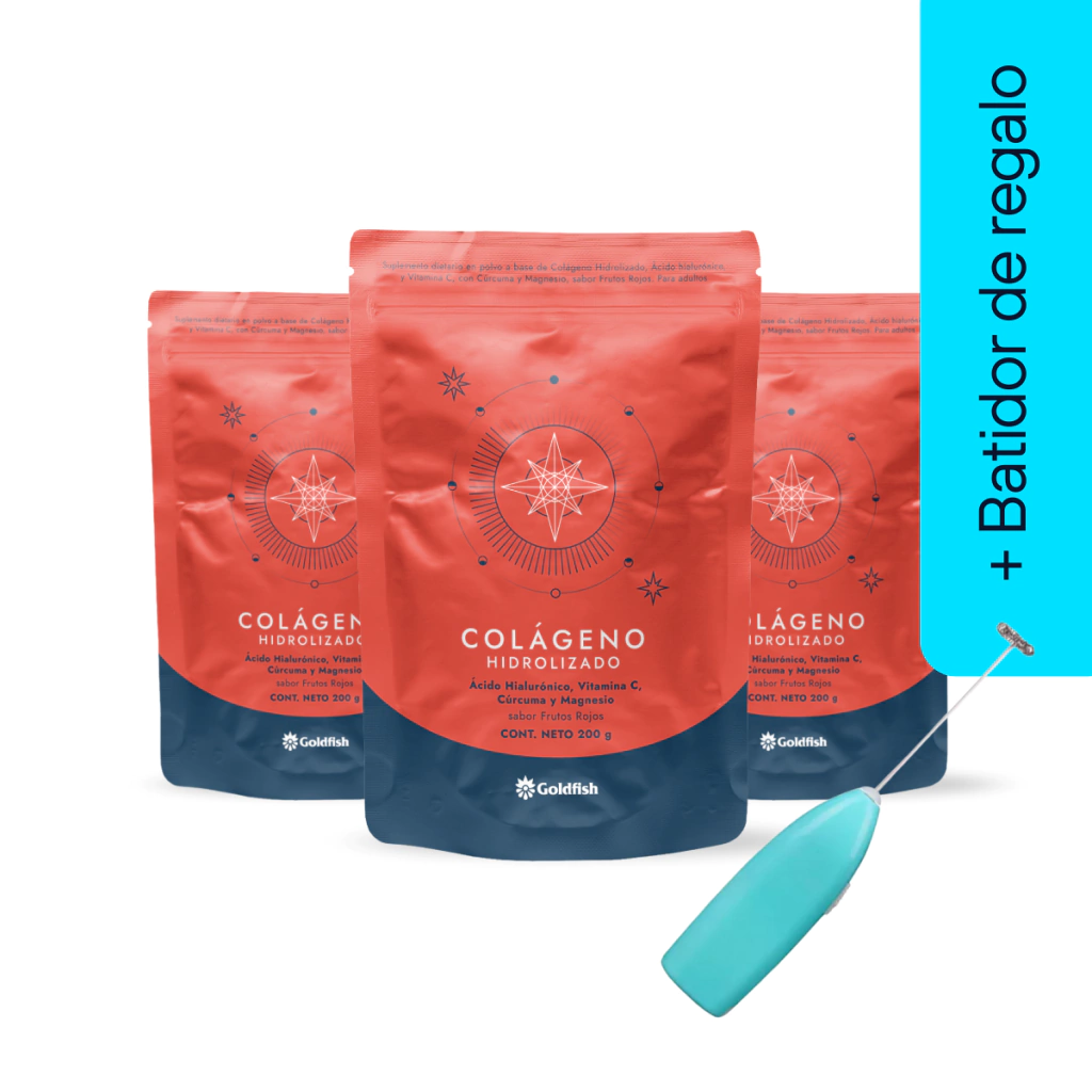Tu bienestar merece algo más que resultados. Con cada plan de Colageno Hidrolizado Goldfish (60 días), te llevás de regalo este batidor eléctrico portátil, ideal para preparar tus tomas diarias en segundos, sin grumos ni complicaciones.